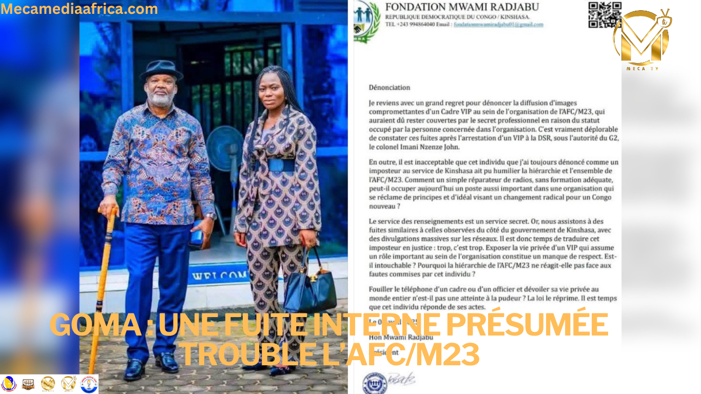À Goma, une nouvelle affaire relayée sur les réseaux sociaux et par plusieurs pages d’actualité proches du terrain vient alimenter les interrogations sur la cohésion interne de l’AFC/M23. Une lettre attribuée à Mwami Rajabu dénonce la diffusion d’images qualifiées de compromettantes impliquant un cadre VIP de l’organisation, alors que ces éléments auraient dû, selon l’auteur, rester couverts par le secret professionnel.